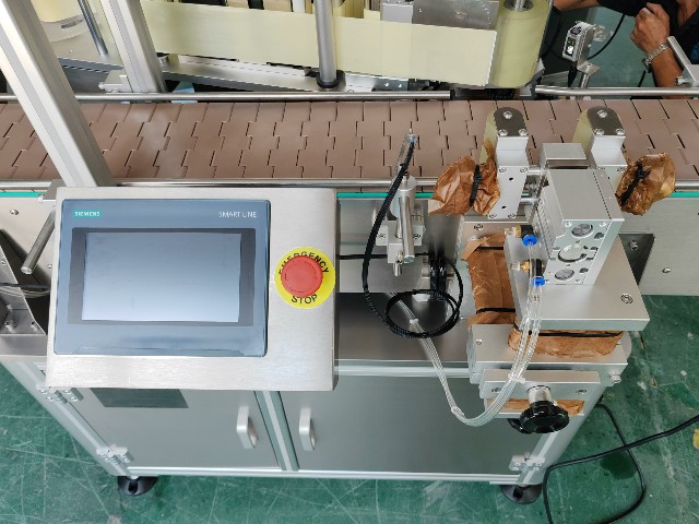 2025.9.12沙特圓瓶單標定點不干膠貼標機+轉盤1臺